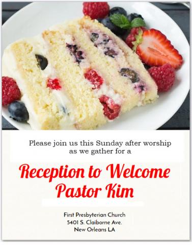 Please join us in worship this Sunday July 2 at 11:00 am. We are thrilled to welcome our new pastor, Rev. Kim Rodrigue and expect it to be a wonderful service! Reception immediately following in the sanctuary with Gentilly cake, finger sandwiches, and other delicious refreshments.
