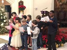 Join us this Sunday for our Lessons and Carols service- instead of the typical sermon + 3 hymns worship format, we will collaboratively decorate the sanctuary and hear the story of Jesus in 6 short Bible readings, interspersed with bells, singing of carols, hymns & choir music. In the absence of a photo of the decoration process, here is one of the children singing from last year. These adorable people will be helping to lead the service this year by reading and performing music.